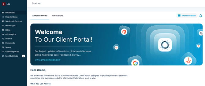 Congratulations! 🎉You have successfully signed up for the G&H Client Portal.